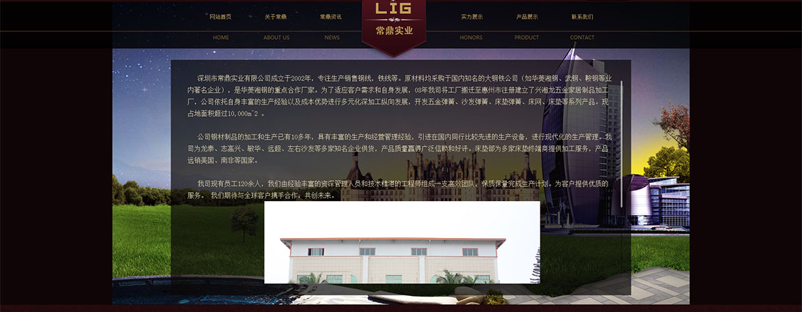 December 2017 Category 网站管理运营 常鼎实业官网、网站设计、官方网站 深圳市常鼎实业有限公司成立于2002年,专注生产销售钢线,铁线等。原材料均采购于国内知名的大钢铁公司(如华菱湘钢、武钢、鞍钢等业内著名企业),是华菱湘钢的重点合作厂家。为了适应客户需求和自身发展,08年我司将工厂搬迁至惠州市注册建立了兴湘龙五金家居制品加工厂,公司依托自身丰富的生产经验以及成本优势进行多元化深加工纵向发展,开发五金弹簧、沙发弹簧、床垫弹簧、床网、床垫等系列产品。现占地面积超过10,000m^2 。